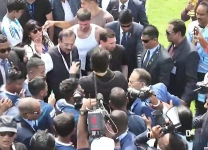 根据印度媒体的消息,当地时间上午11点左右,梅西和苏亚雷斯、德保罗来到可容纳8.5万人(实际到场约8万人)的盐湖体育场。按计划,梅西应该绕场与球迷打招呼、互动。